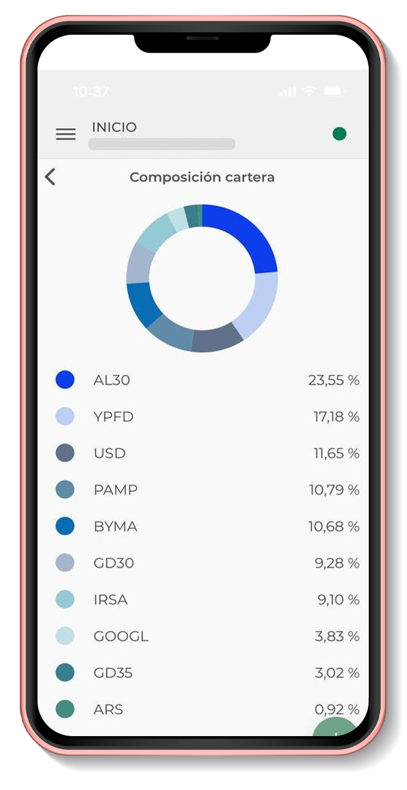 Visualizá tu balance total, rendimiento mensual accedé a todas las funciones principales desde una sola pantalla. Simplicidad y poder en tus manos Gestioná tu perfil, configurá la seguridad y personalizá tu experiencia de inversión. Tu cuenta, tus reglas Explorá y compará acciones de las empresas más importantes del mundo. Información en tiempo real decisiones inteligentes Entendé cómo están distribuidas tus inversiones con gráficos claros e intuitivos. Diversificación inteligente, riesgo controlado. Seguí los principales índices y mercados globales con datos actualizados al instante. Información precisa para decisiones acertadas.